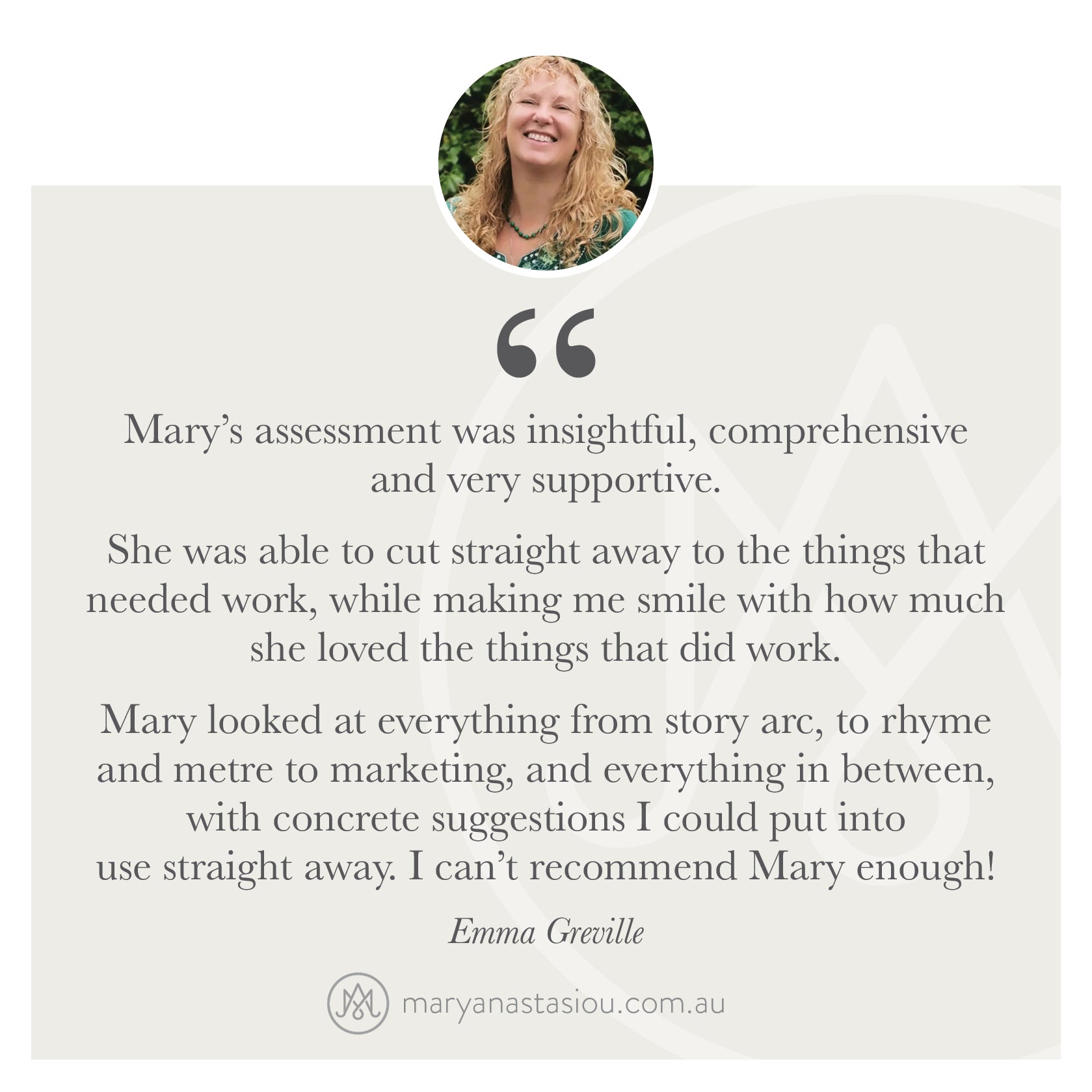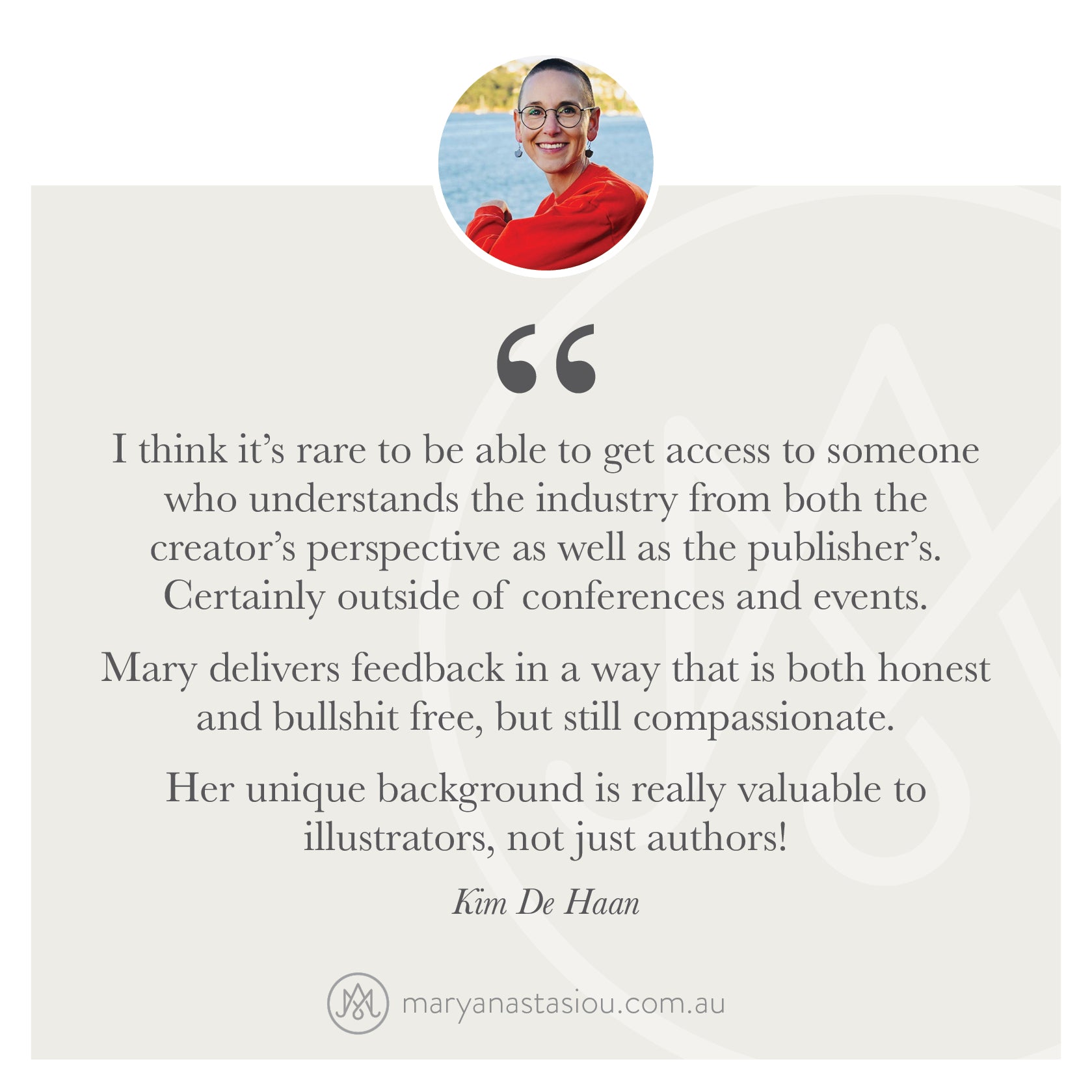 - Assessment of your written craft or illustration style including clear direction for ways to refine and improve.