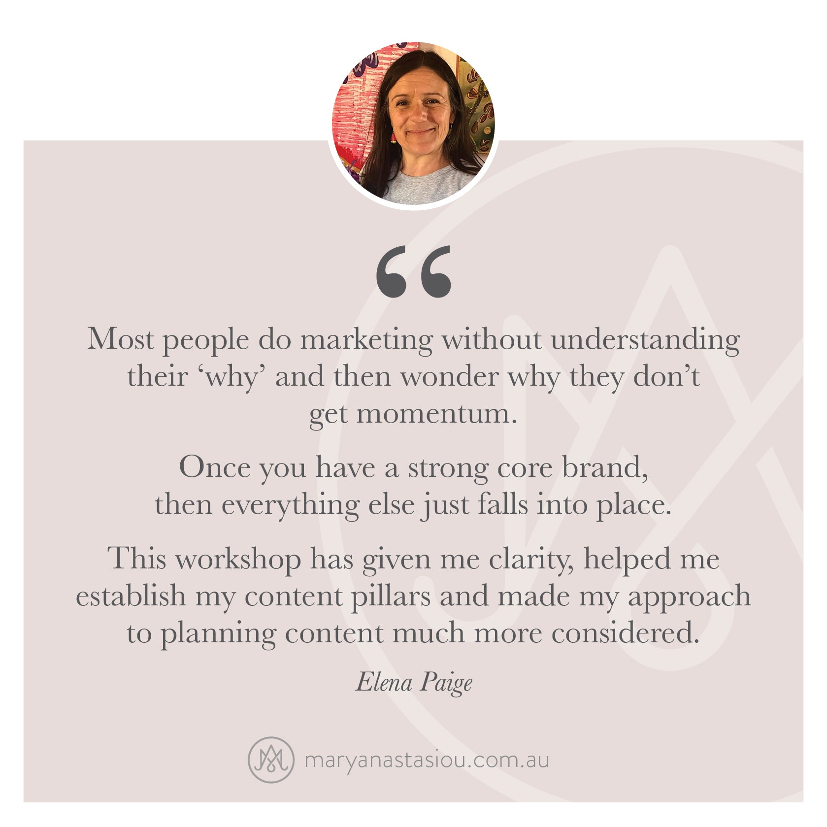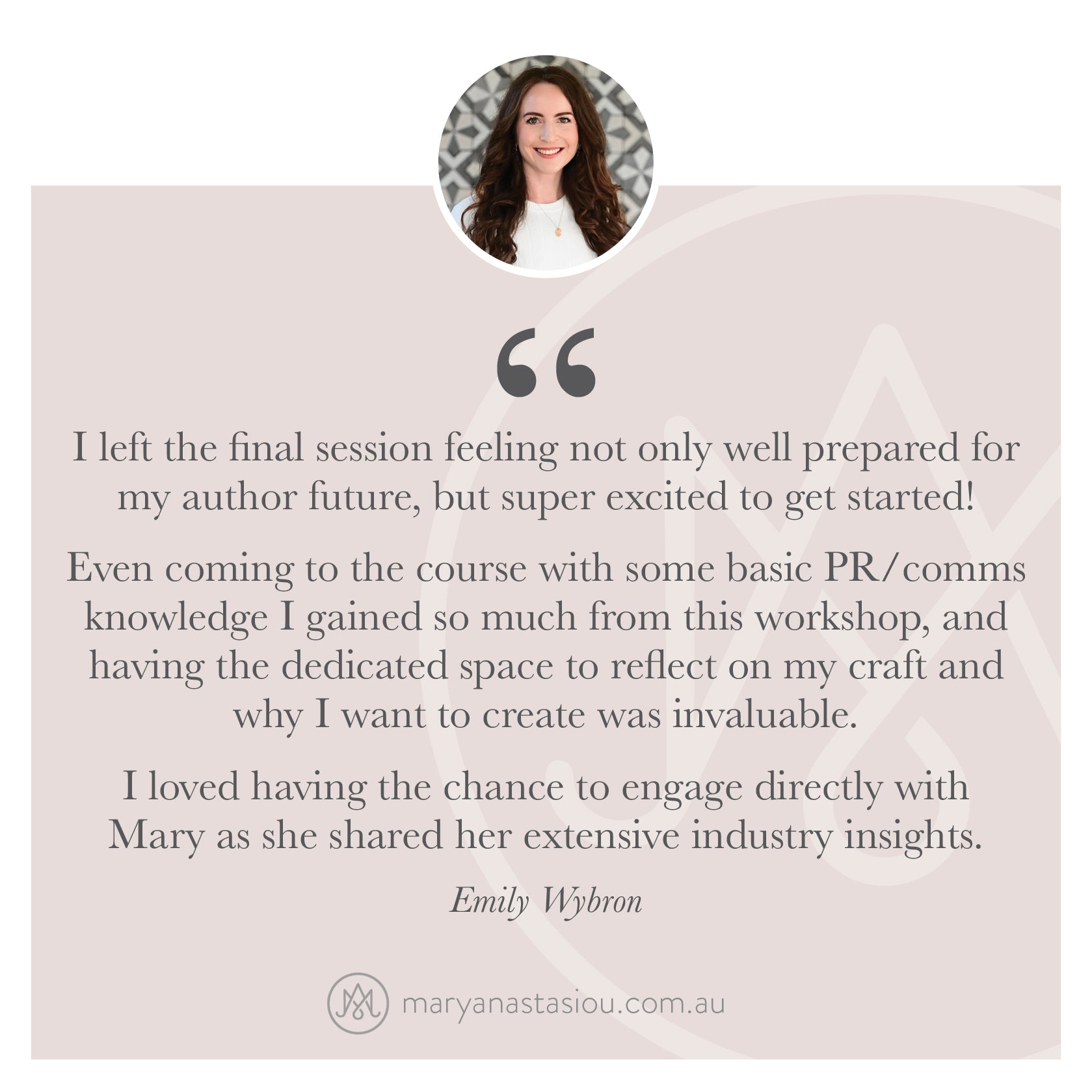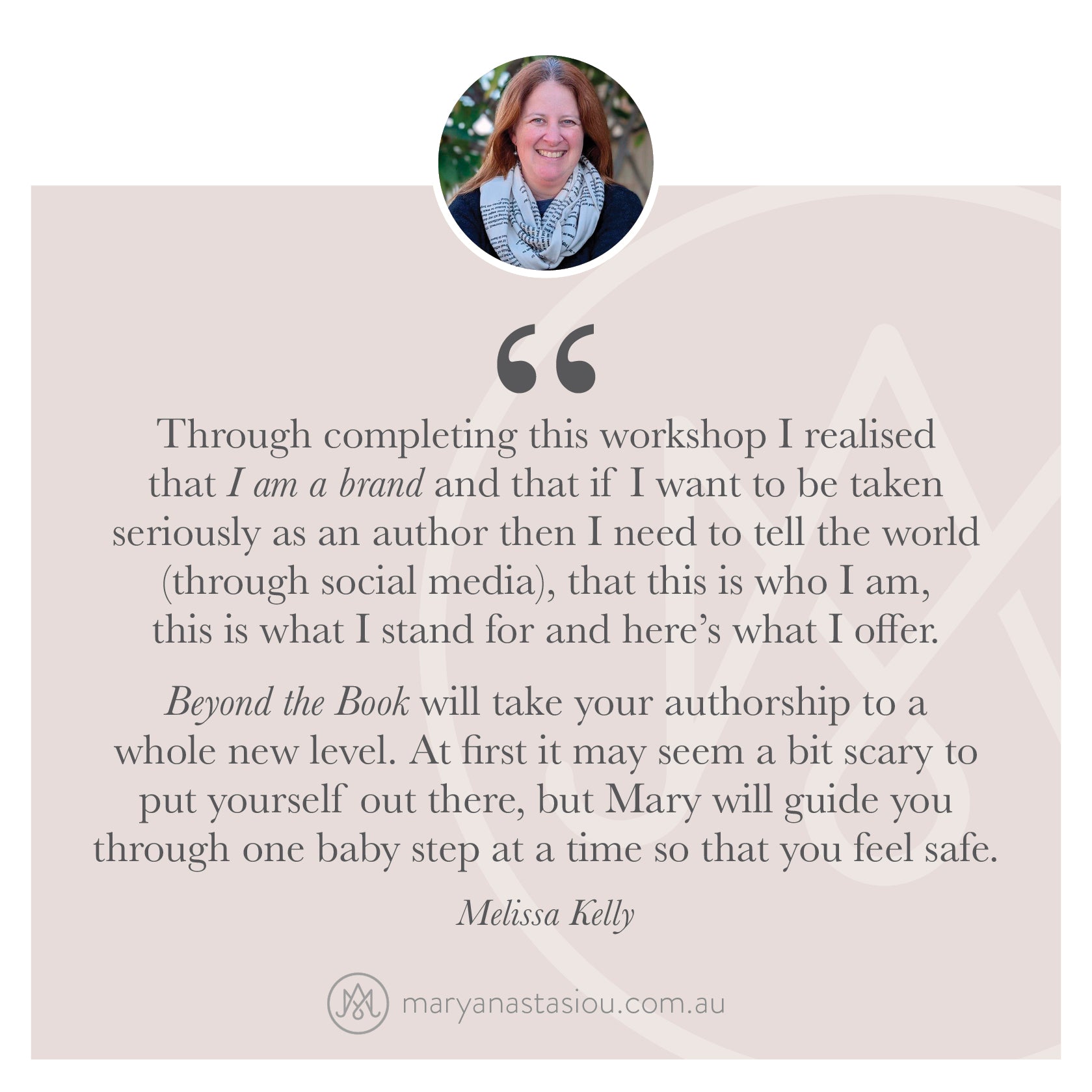 - Supportive Q&A access via the Publishing Matters Facebook Group + feedback on your brand work with additional information and ongoing support from Mary